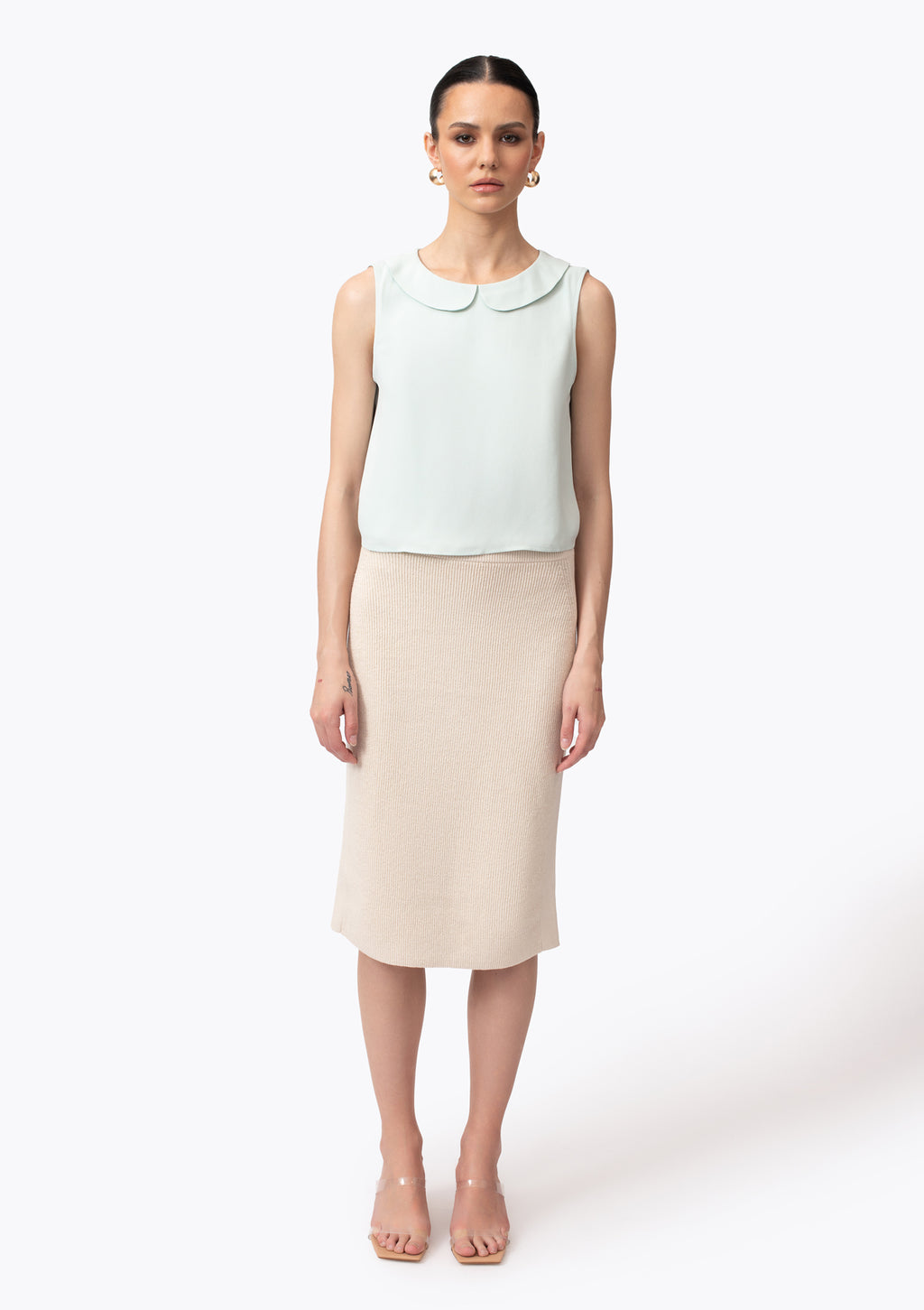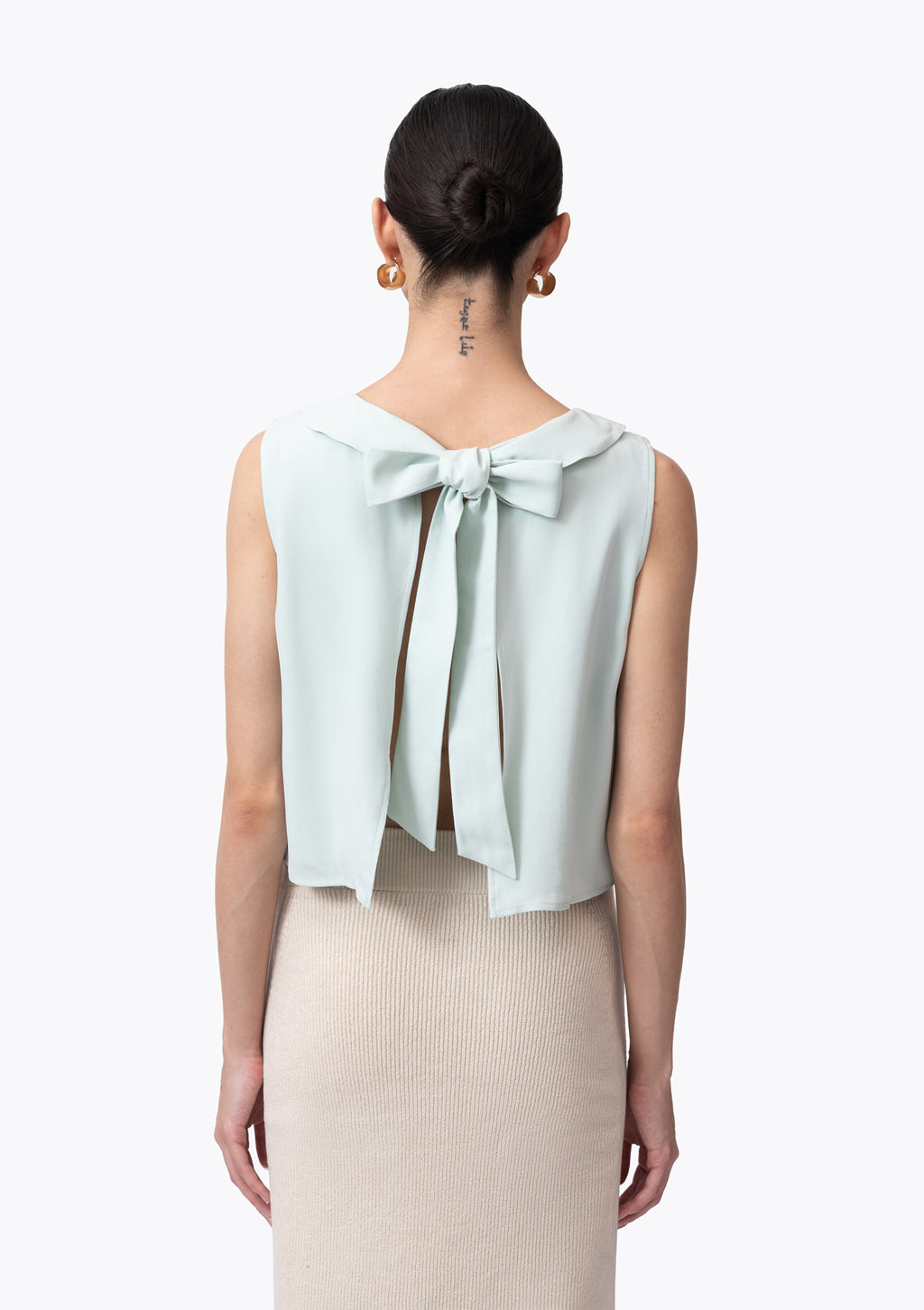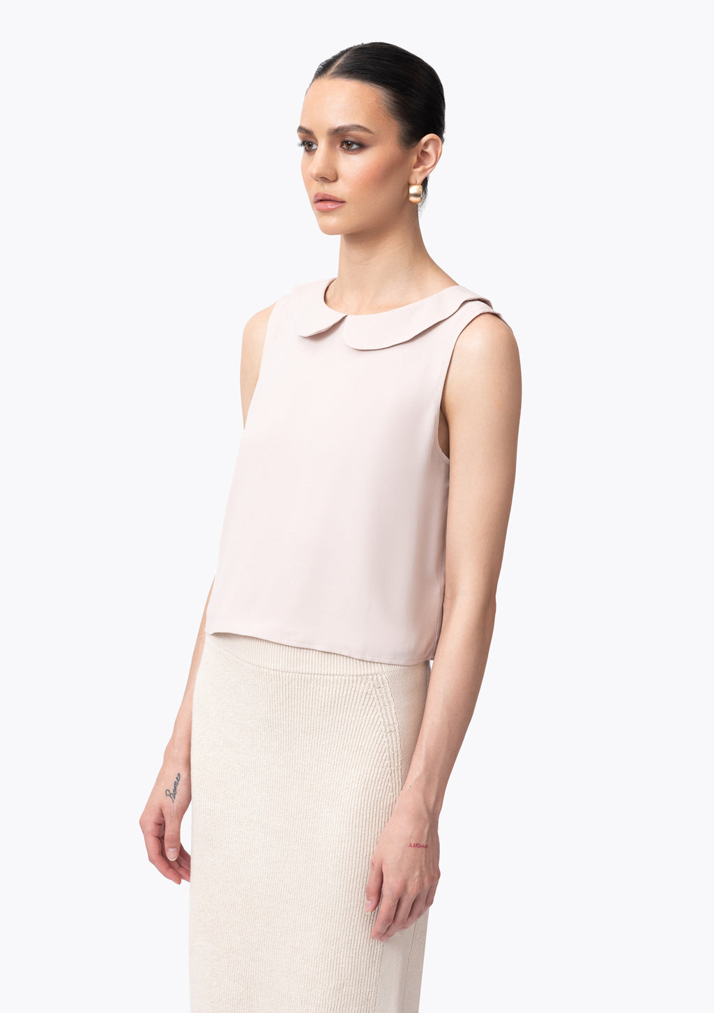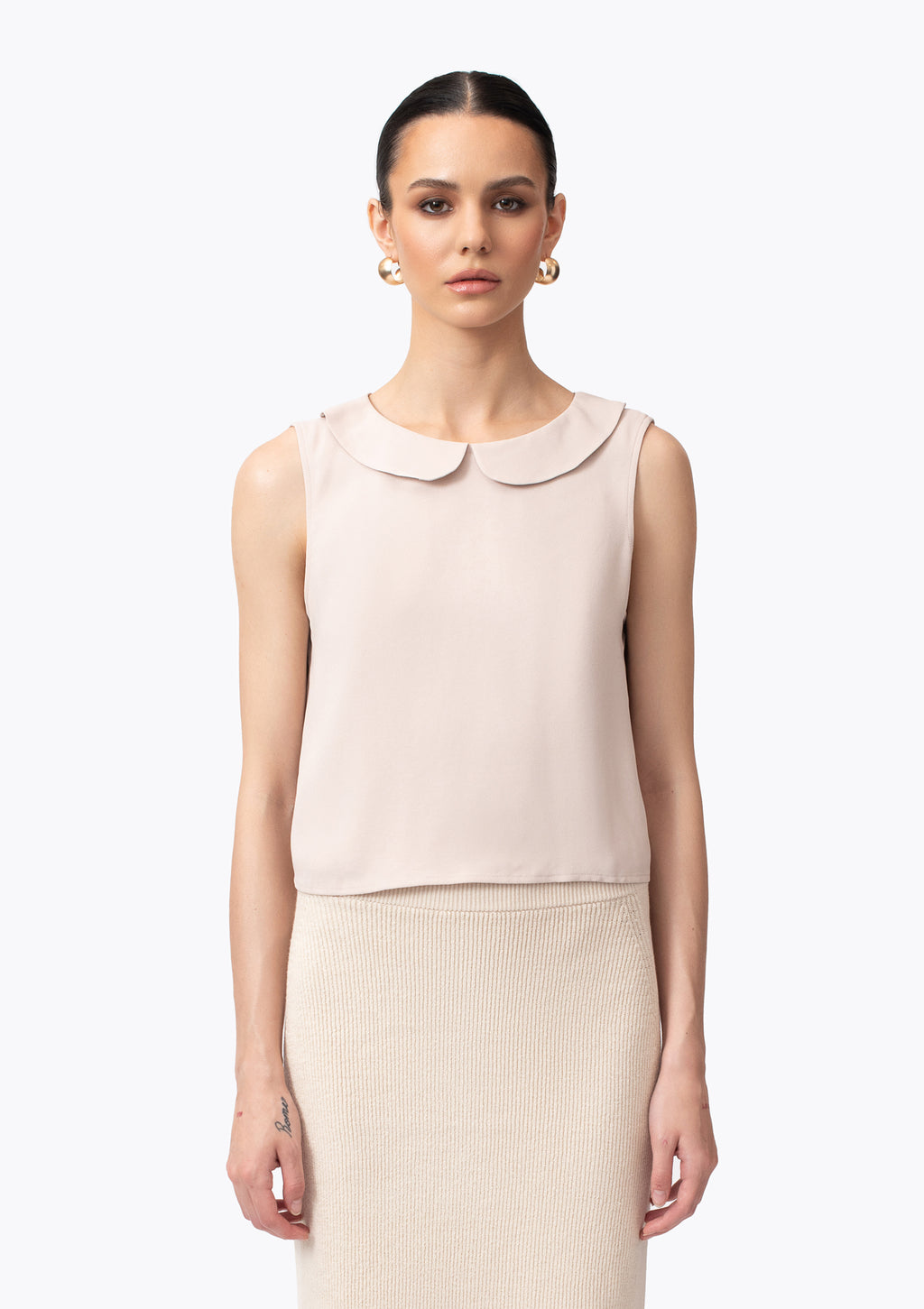 With a feather-light feel, sleeveless silhouette, and feminine accents, the Clara blouse offers relaxed sophistication for any wardrobe. Viscose crepe — luxurious, smooth, and breathable — is brought to life by a crisp peter pan collar and soft bow in the back.