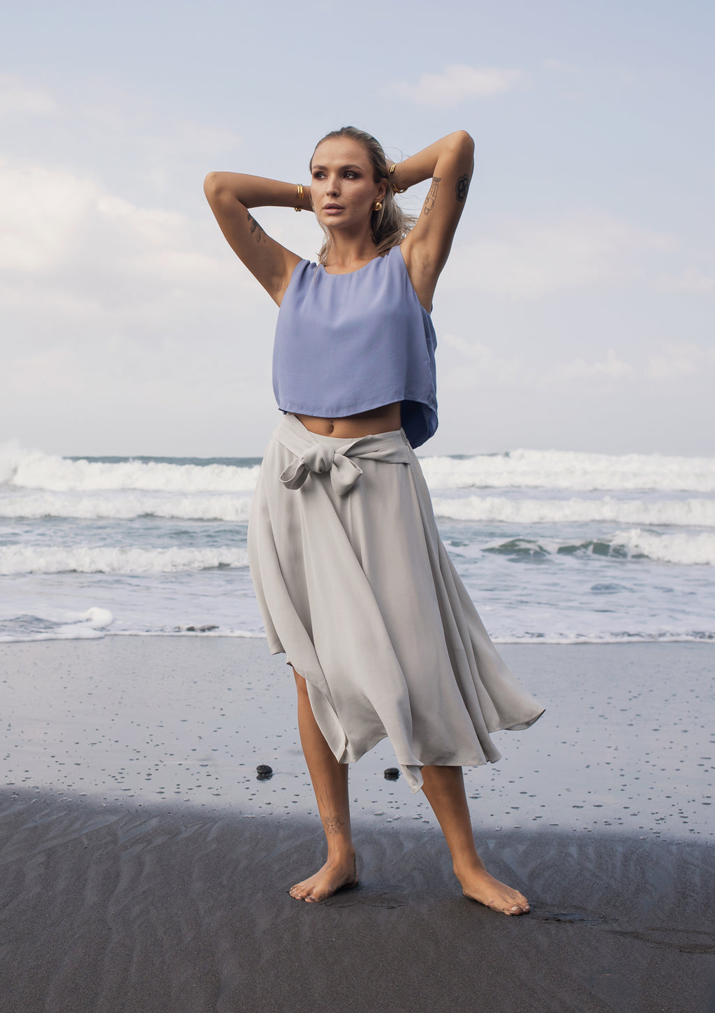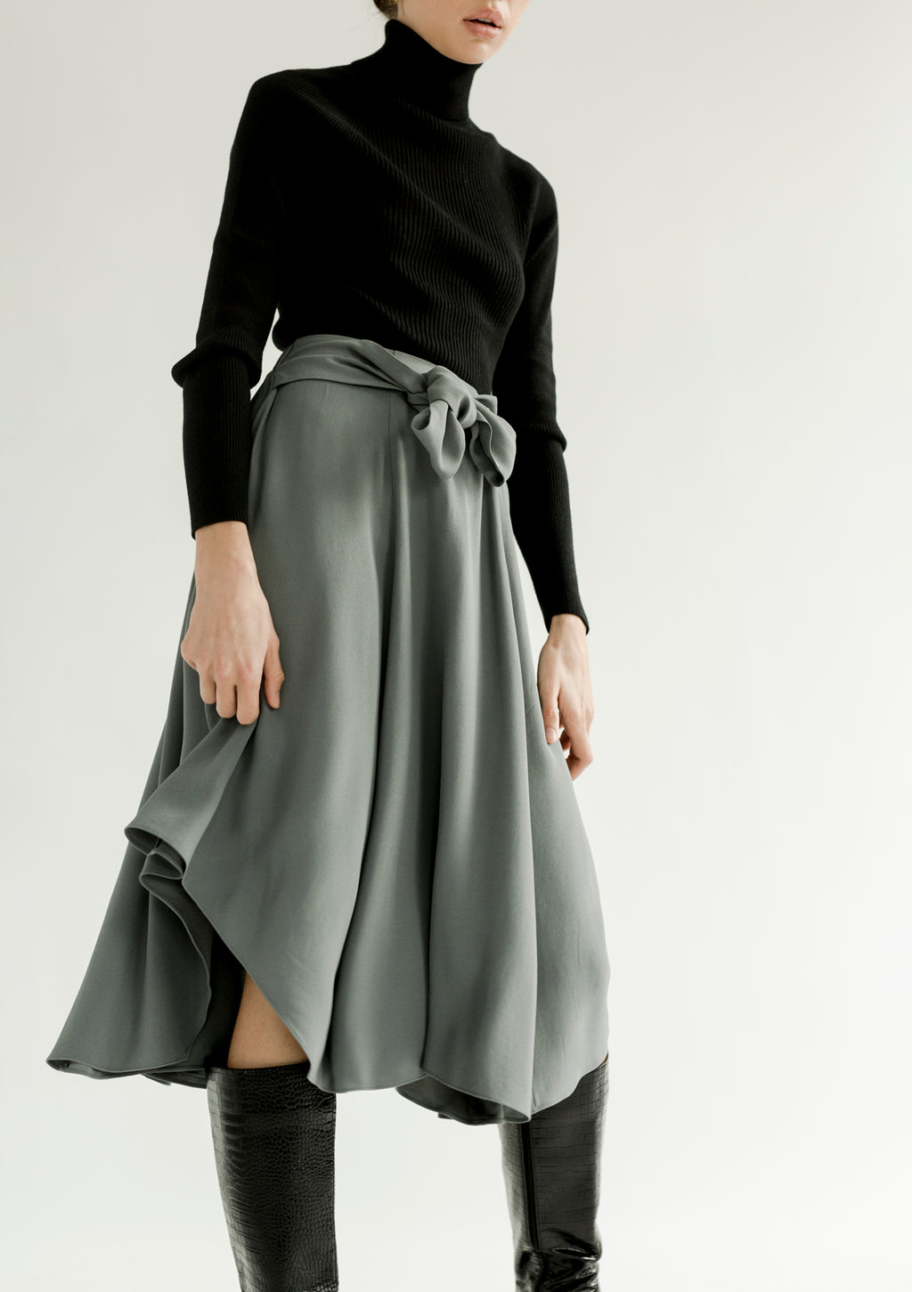 With its dancer-like grace and cascading folds, the Rojeen skirt will elevate any all-season wardrobe. The asymmetrical silhouette is cut from a smooth viscose crepe to accentuate its artful drape. Combining sophisticated elegance with modern leisure, this midi-length skirt is designed with both comfort and aesthetics in mind. A flattering tie bow and pull-on waistband ensure ultimate ease of wear.