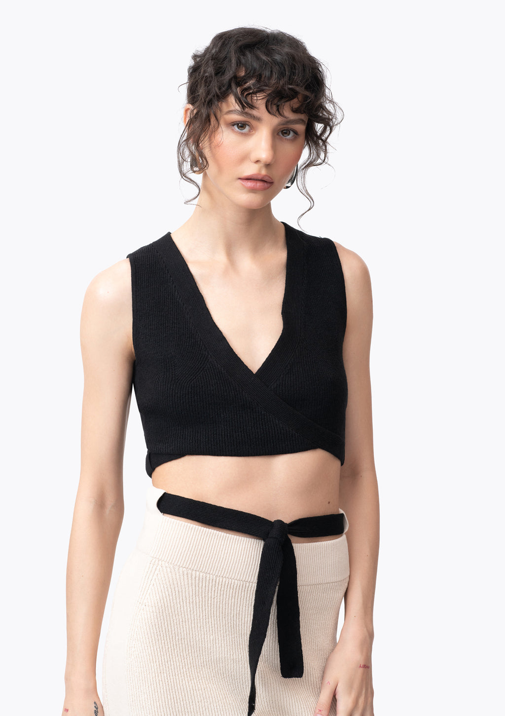 The Noor is a cross-front knit top featuring elongated ties that allow for an expressive, customized fit. Fine ribbing adds architectural structure in a smooth linen knit blend, while a cropped length offers negative space to crisscross the ties around the midriff. As comfortable as it is spellbinding, the Noor is wearable art.