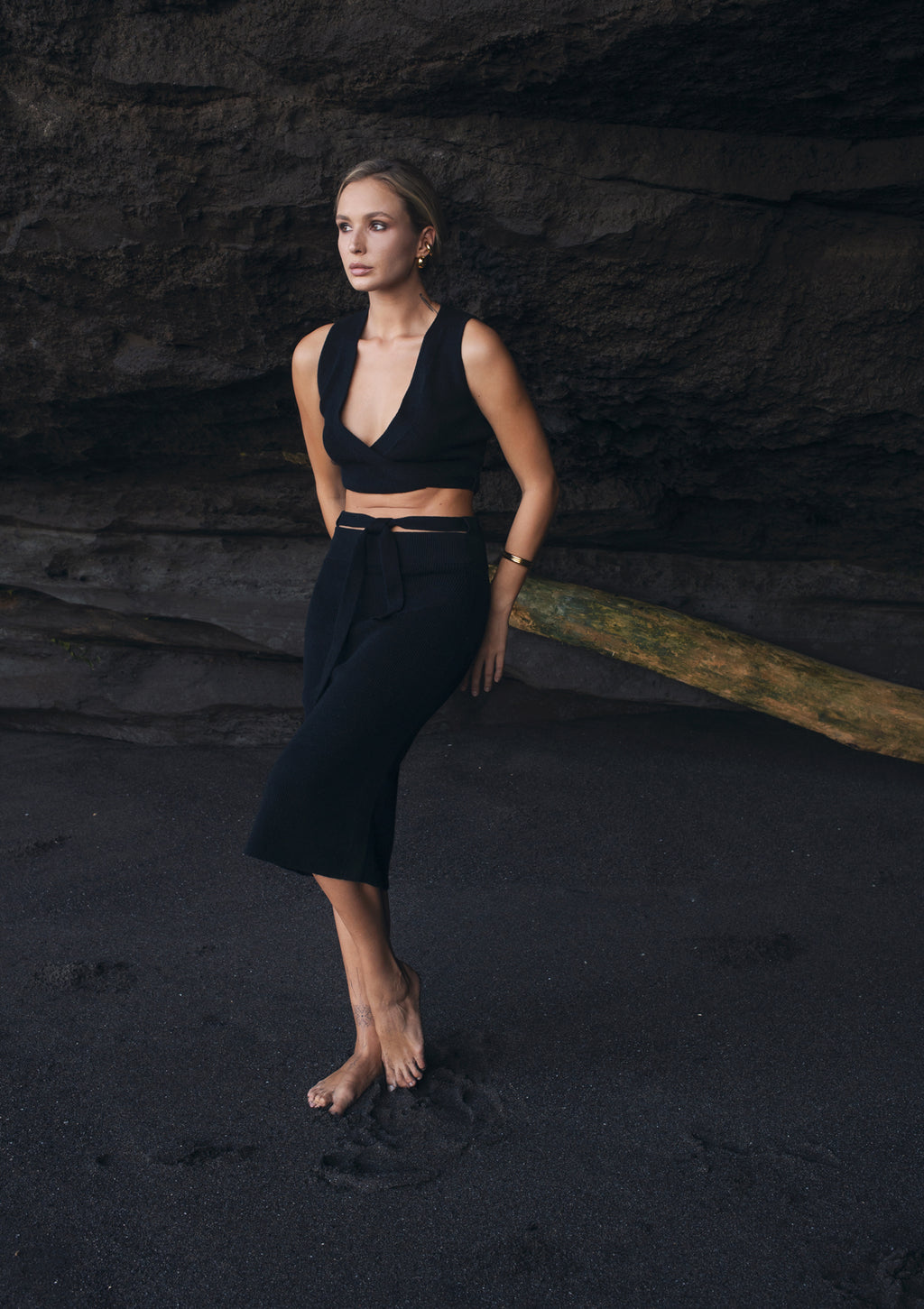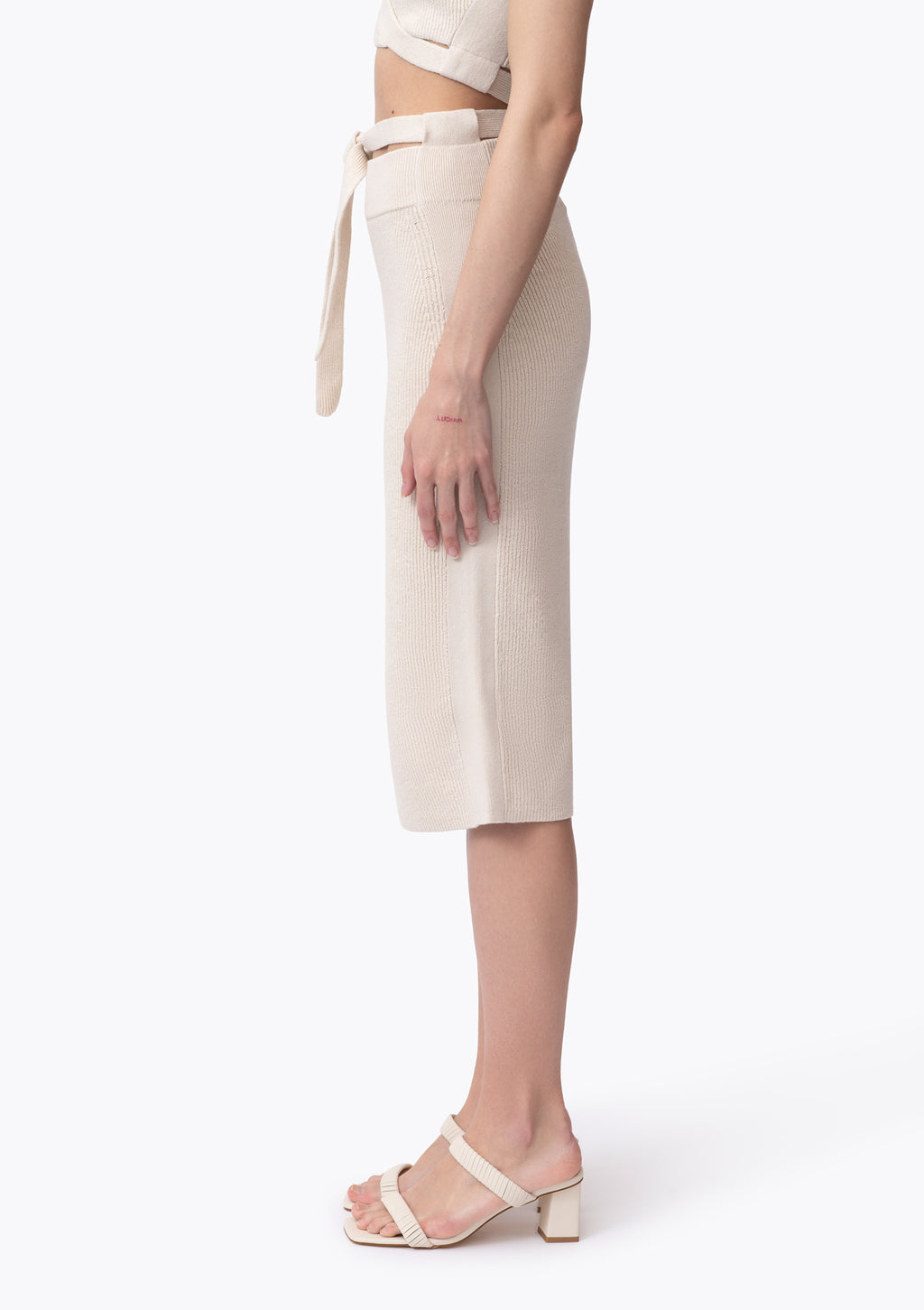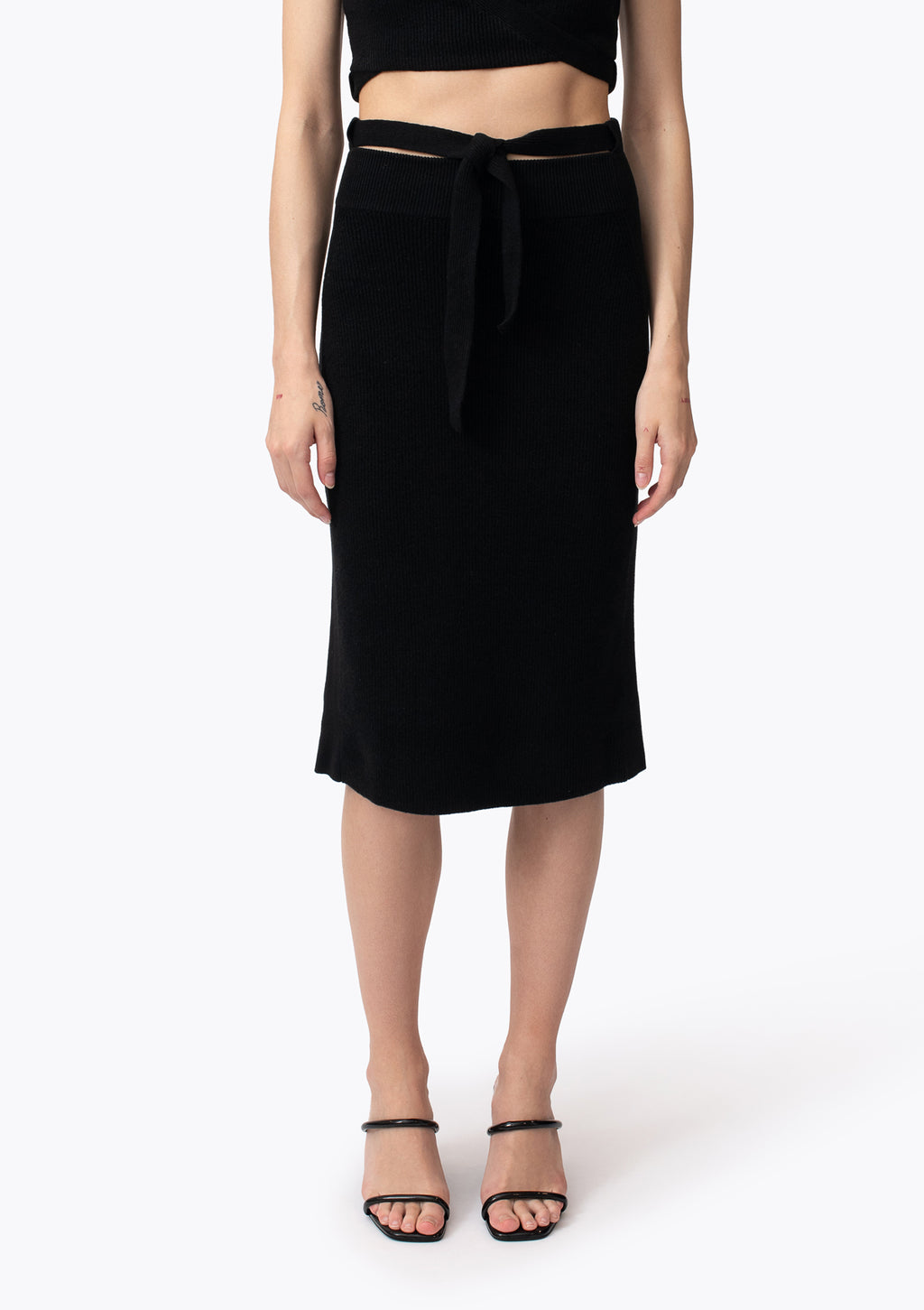 The Soraya is a classic tube skirt with a straight, minimalistic silhouette. Its flexible ribbed knit and elastic waistband were thoughtfully designed to fit and flatter. Includes a knit belt that can be tied through the loops at either side of the waist. At once sophisticated and alluring, this timeless piece is a permanent addition to any wardrobe.
