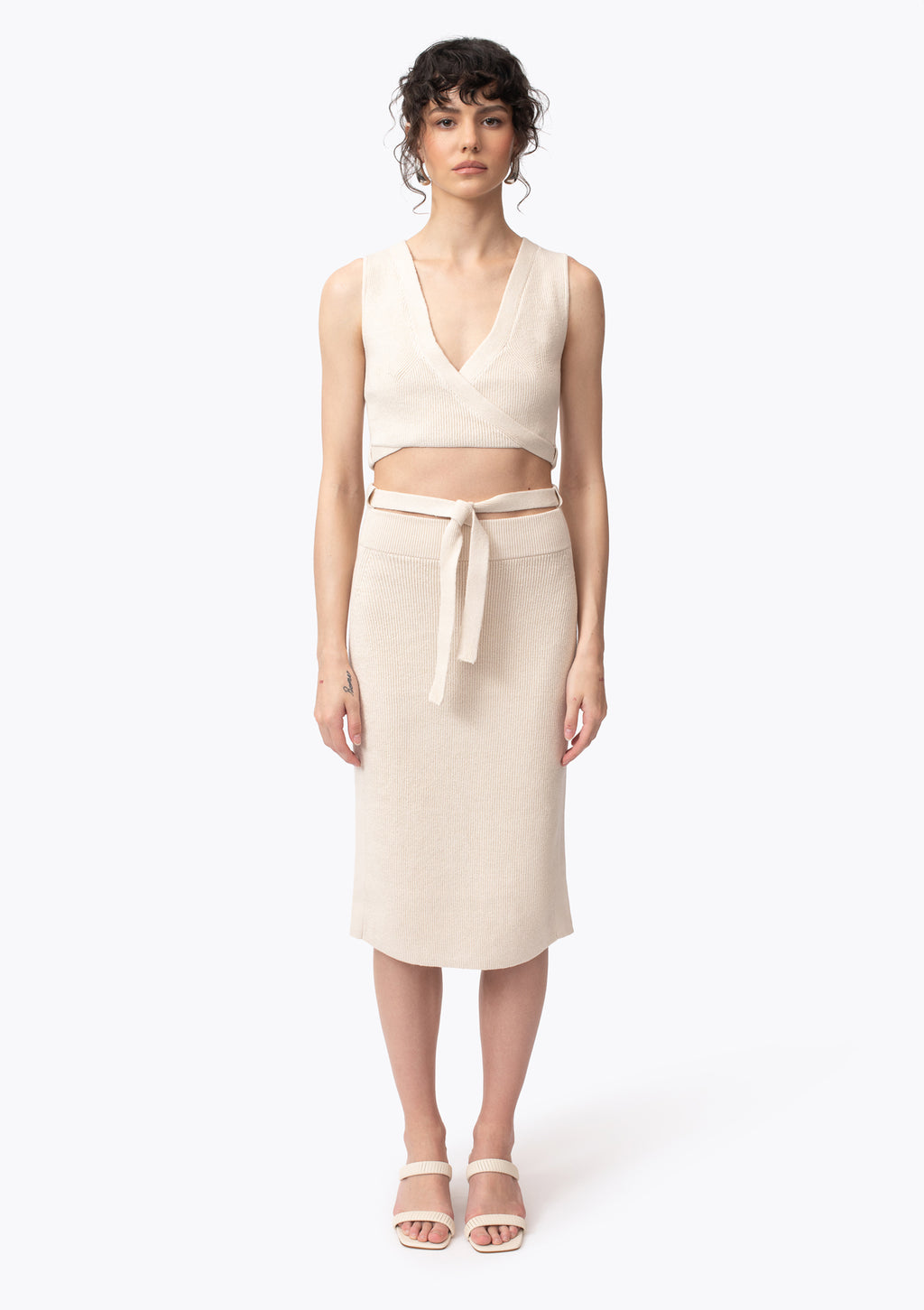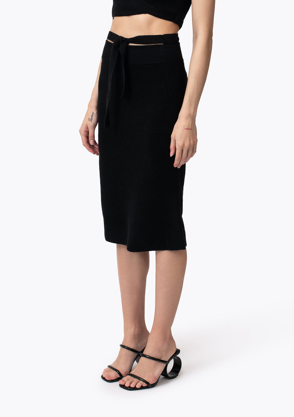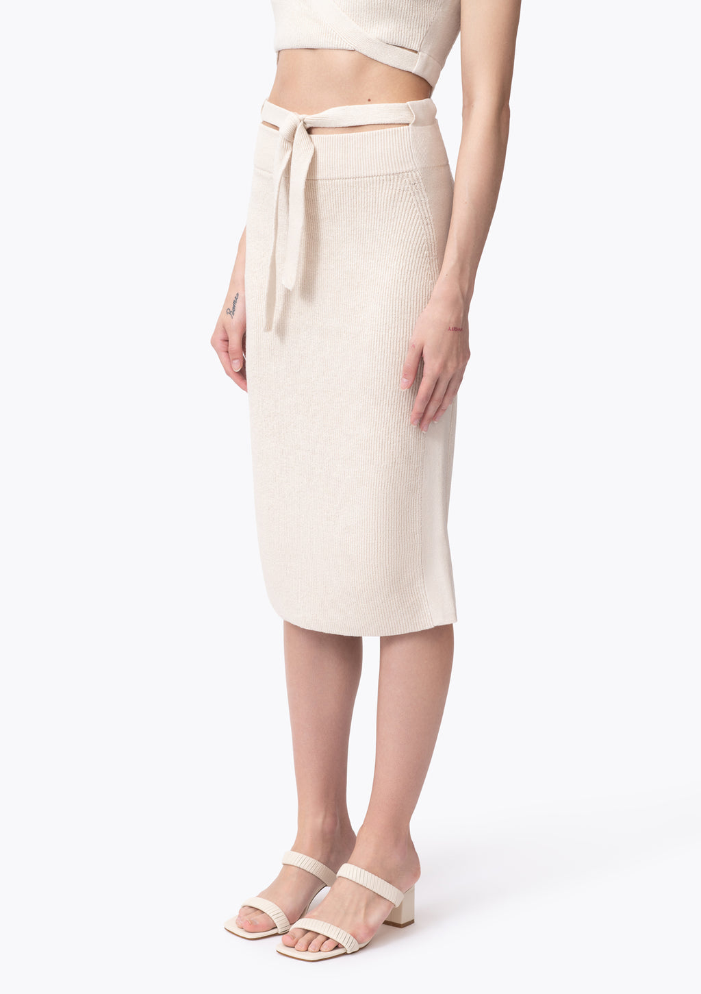 The Soraya is a classic tube skirt with a straight, minimalistic silhouette. Its flexible ribbed knit and elastic waistband were thoughtfully designed to fit and flatter. Includes a knit belt that can be tied through the loops at either side of the waist. At once sophisticated and alluring, this timeless piece is a permanent addition to any wardrobe.