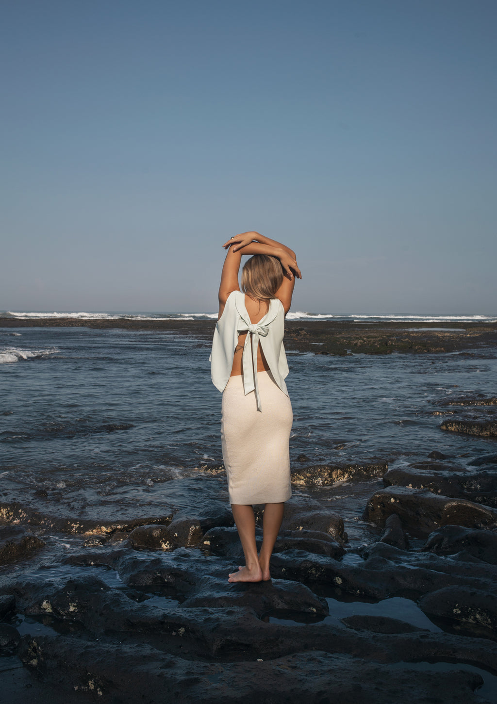 With a feather-light feel, sleeveless silhouette, and feminine accents, the Clara blouse offers relaxed sophistication for any wardrobe. Viscose crepe — luxurious, smooth, and breathable — is brought to life by a crisp peter pan collar and soft bow in the back.
